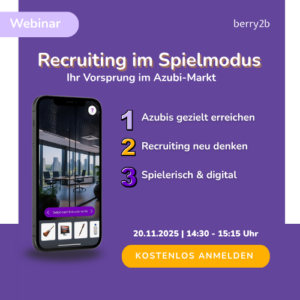 Wie funktioniert heutzutage modernes Azubi-Recruiting? Unser Mitgliedsunternehmen berry2b zeigt interessierten Unternehmen in einem Online-Vortrag, wie sie Ausbildungsberufe spielerisch, digital und authentisch präsentieren und junge Talente dort erreichen, wo sie wirklich unterwegs sind.